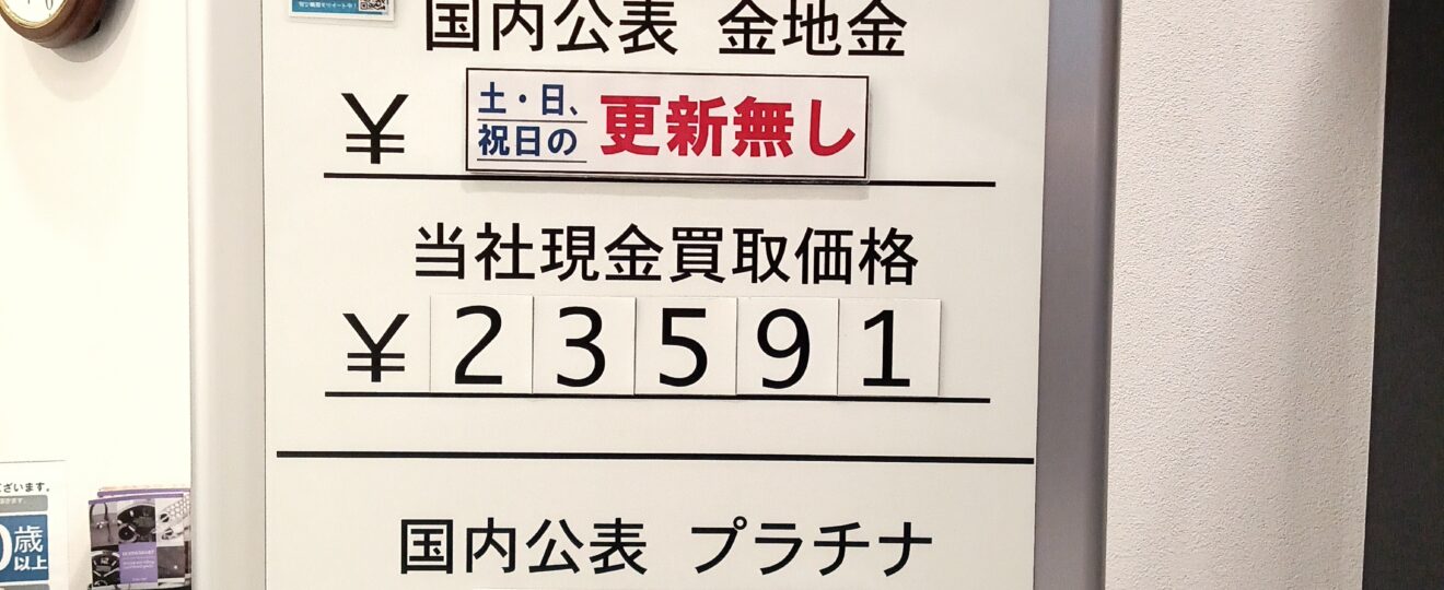 【本日の金・銀・プラチナ買取り相場】