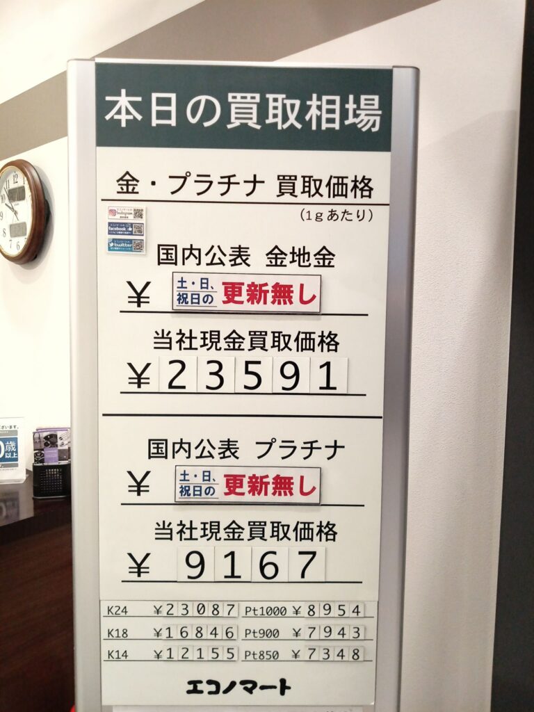 3/21(土)本日の金・プラチナ買取価格《エコノマート 盛岡南イオン・菜園・サンリア》